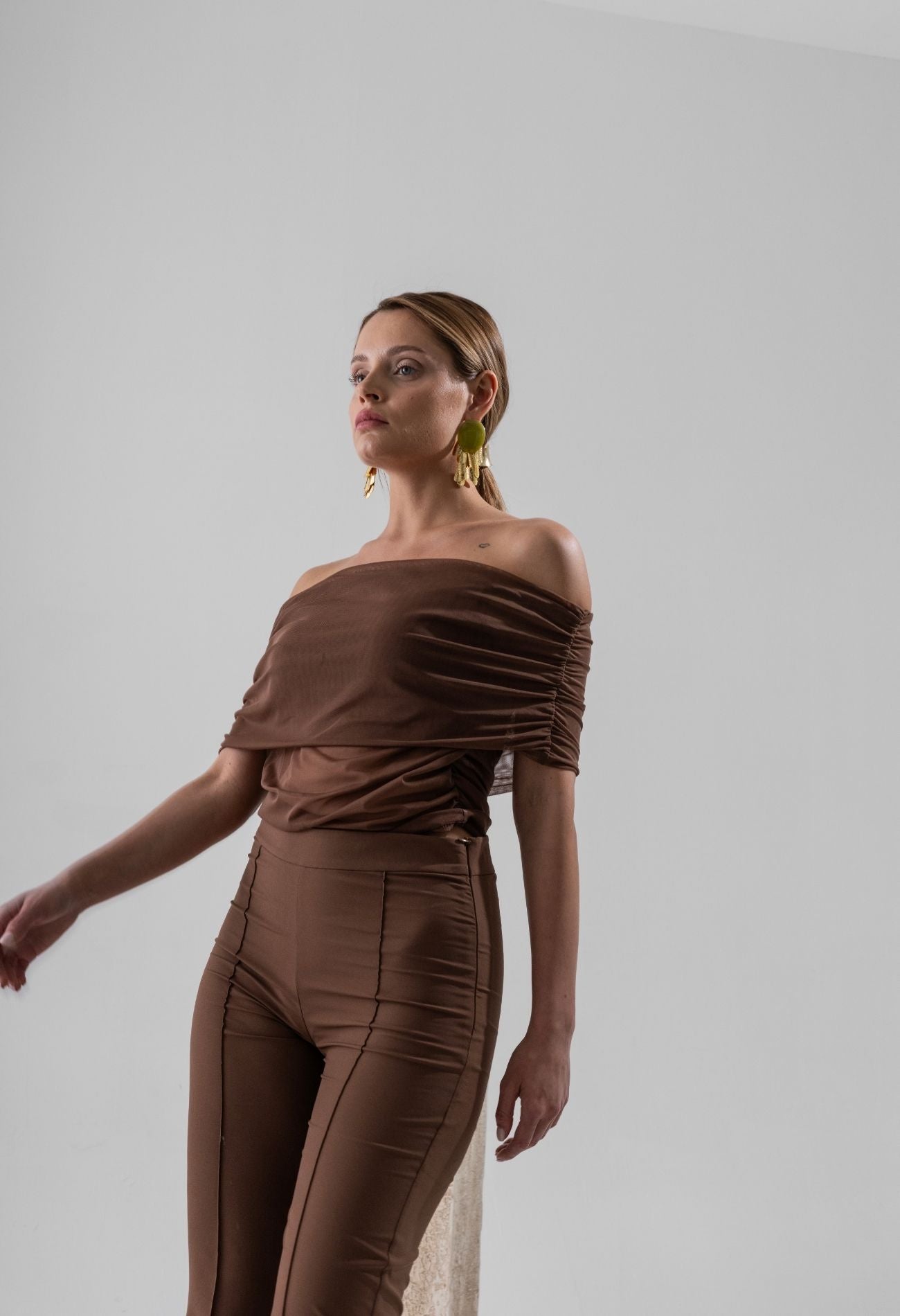 Kahverengi Omuz Açık Drapeli Top