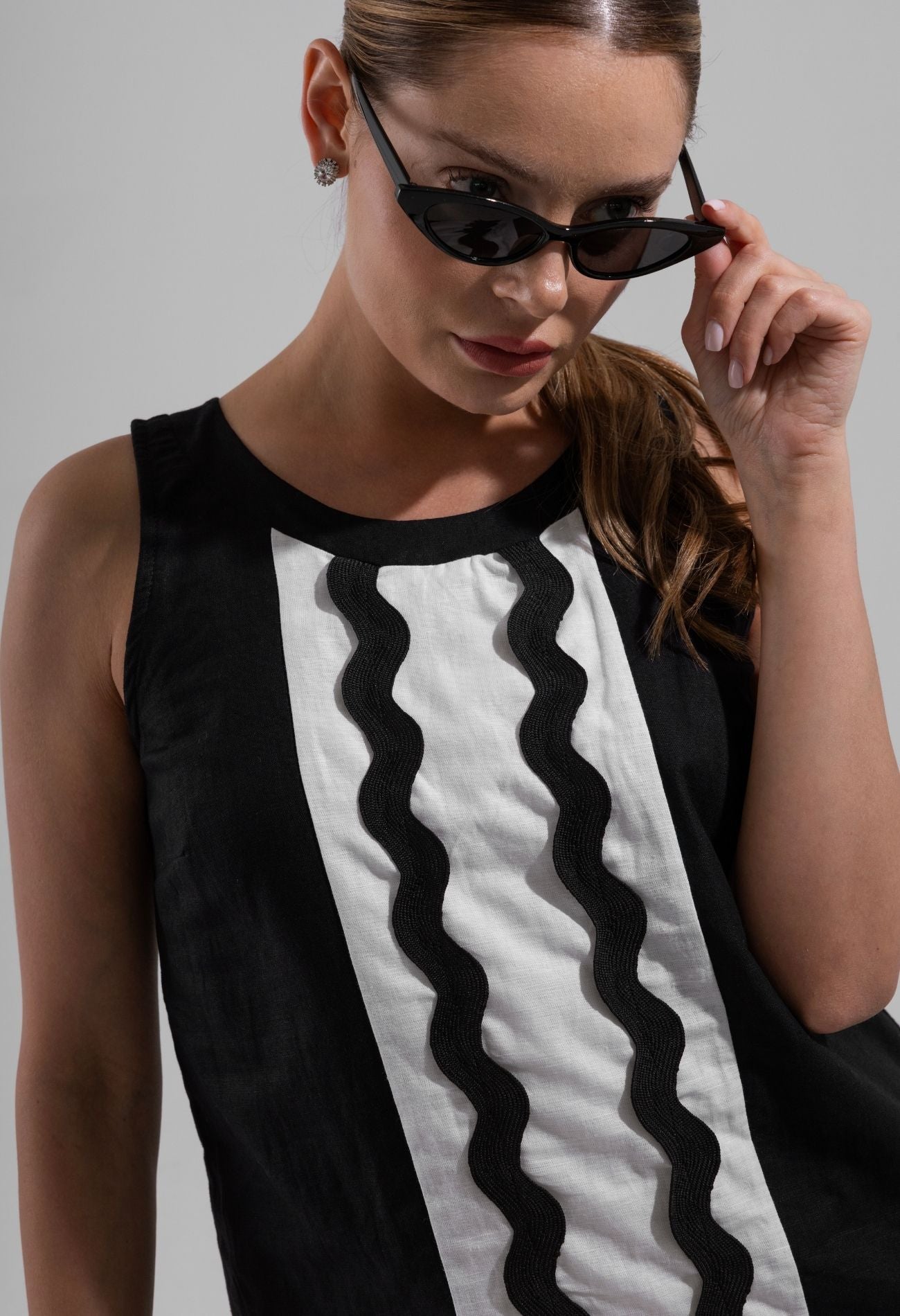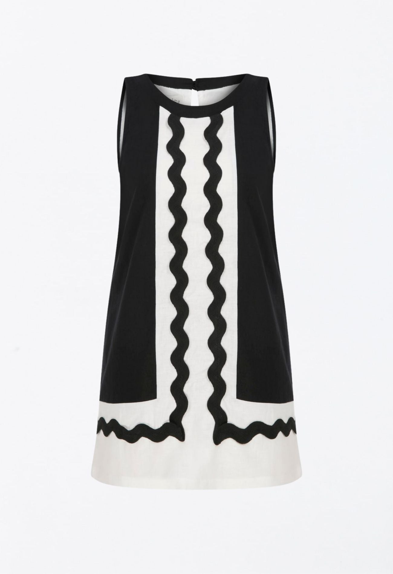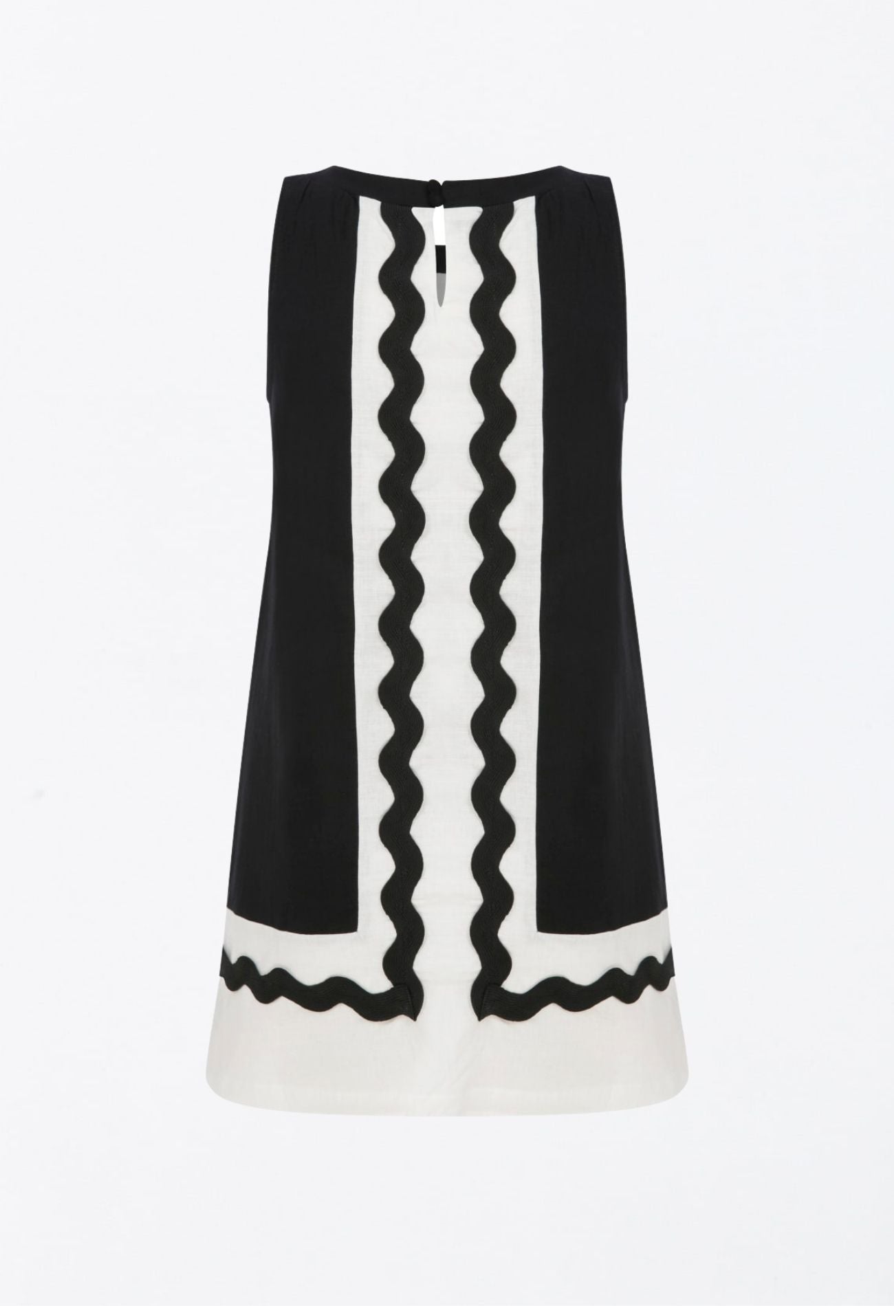 Kontrast Dalga Şerit Detaylı, Siyah-Beyaz Mini Elbise